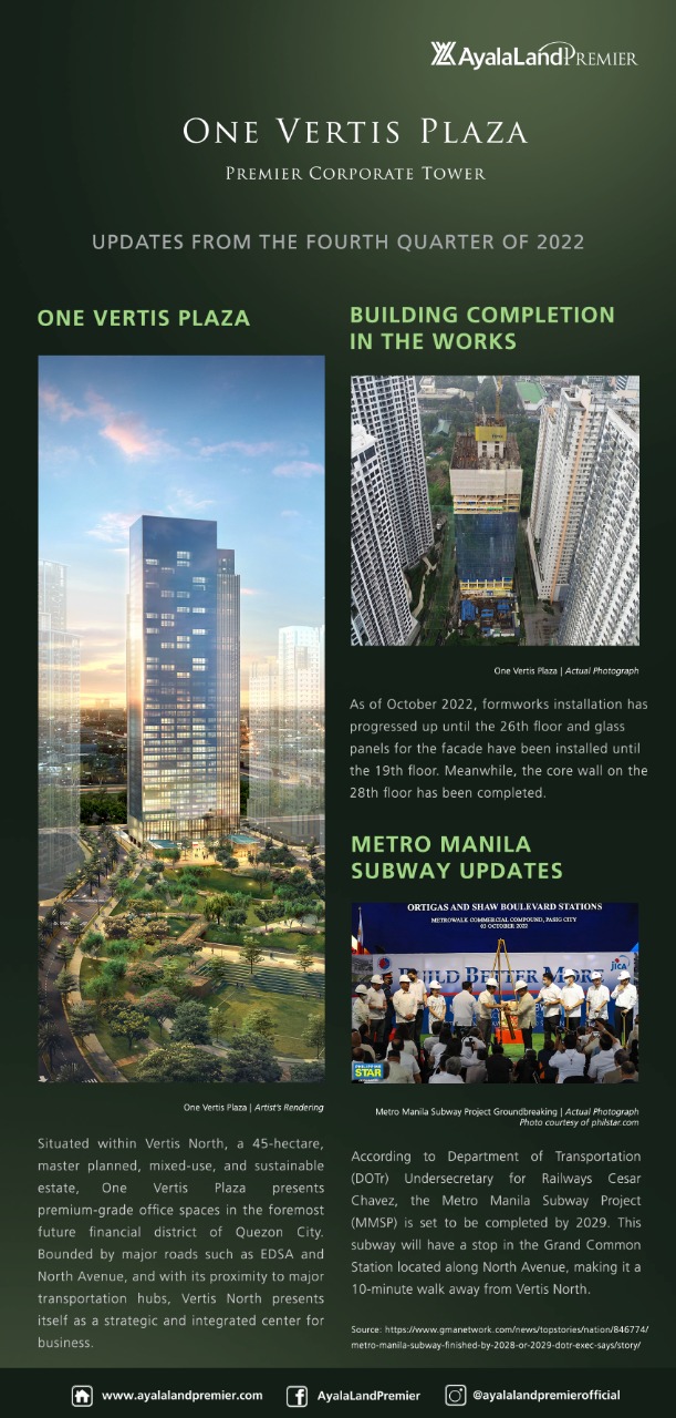 One Vertis Plaza is a premier corporate tower in Vertis North, Quezon City, offering office environments with direct access to the estate's parks and transport links.